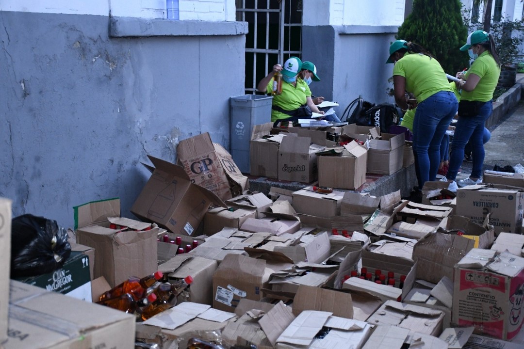 Autoridades realizaron un operativo de inspección, vigilancia y control en la ciudad de Medellín y hallaron en el centro de la ciudad más de mil botellas de licor falsificado.