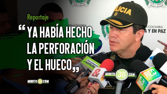 El Coronel Carlos Mauricio Sierra Niño, Comandante del Departamento de Policía Antioquia, habló sobre la situación que se presentó en el municipio de El Bagre, en el que un hombre intentó robar el Banco Agrario mediante la perforación de una vivienda aledaña, la cantidad de dinero que pretendía robar ascendía a 360 millones de pesos.