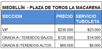 •Discapacitados: Hay secciones habilitadas para discapacitados en: Bogotá, platea y en Medellín VIP. No olvide notificar al momento de la compra.