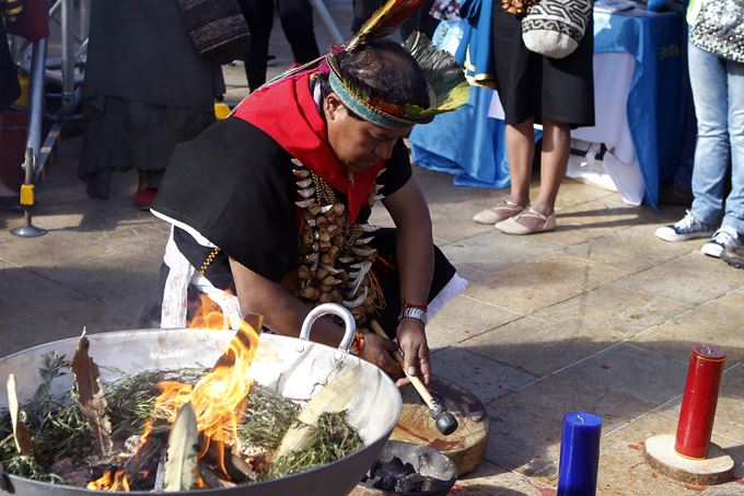 Bajo la temática “Poesía, Chamanismo y Cantos Originarios”, el encuentro comenzó con indígenas encendiendo el “fuego originario” para evocar la prehistoria de nuestras civilizaciones y continuar con las reflexiones del estadounidense Carl Ruck, quien entregó un discurso sobre el poder de la poesía en la transformación global.