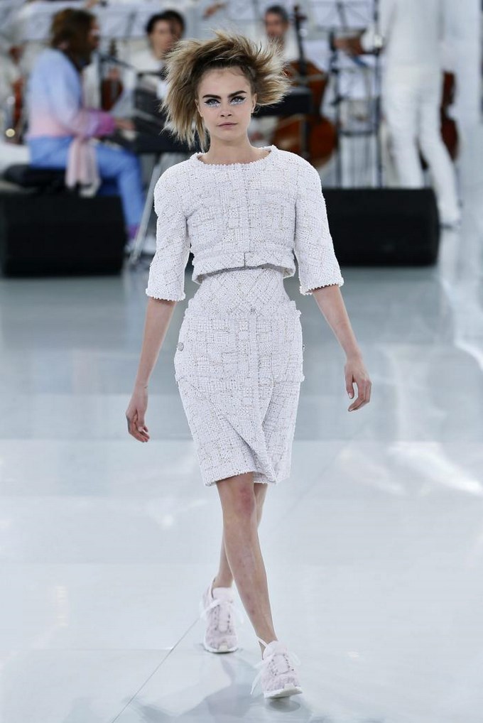 La encargada de romper el hielo, también fue quien puso el broche final: Cara Delevingne lució un vestido de novia que se deshizo del corsé… pero no de las zapatillas. París, EFE.-
