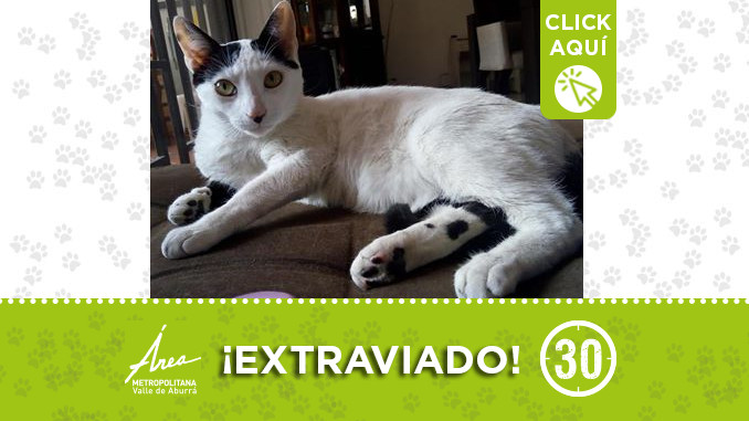 Este gatico se perdió por la Loma de los Bernal cerca a la urbanización Yerbabuena. Si usted lo ha visto por favor llamar a los números: 3006146609 – 3225268630. ¡Difunde!