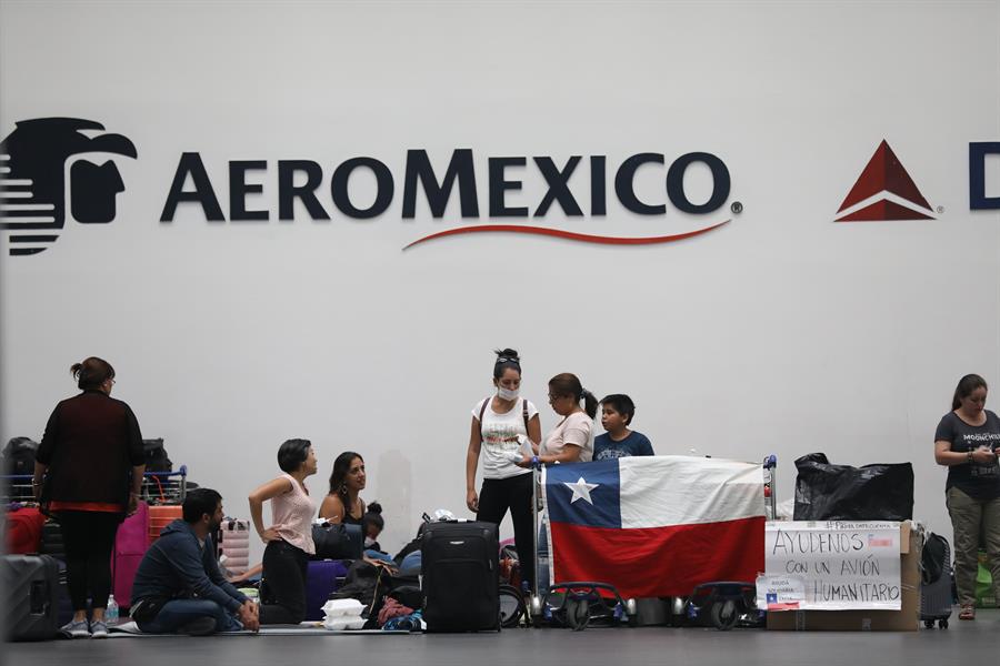 Chilenos varados en el aeropuerto de la Ciudad de México pidieron este martes ayuda para poder viajar de regreso a su país luego de que varias aerolíneas cancelaran sus vuelos con el argumento del cierre de fronteras debido a la pandemia del COVID-19, según denunciaron a Efe.