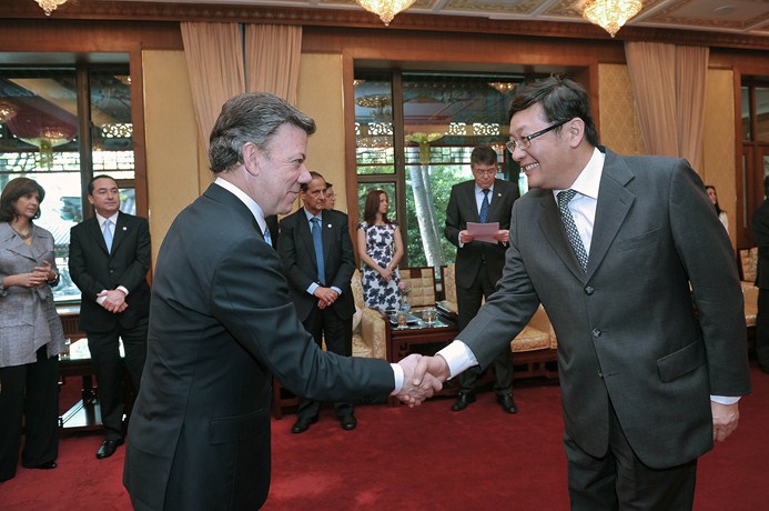 “China no debe olvidar que Colombia se encuentra estratégicamente ubicada entre el océano Pacífico y el Mar Caribe, y es punto de contacto entre Suramérica y América Central y América del Norte”, recordó el Presidente Santos.