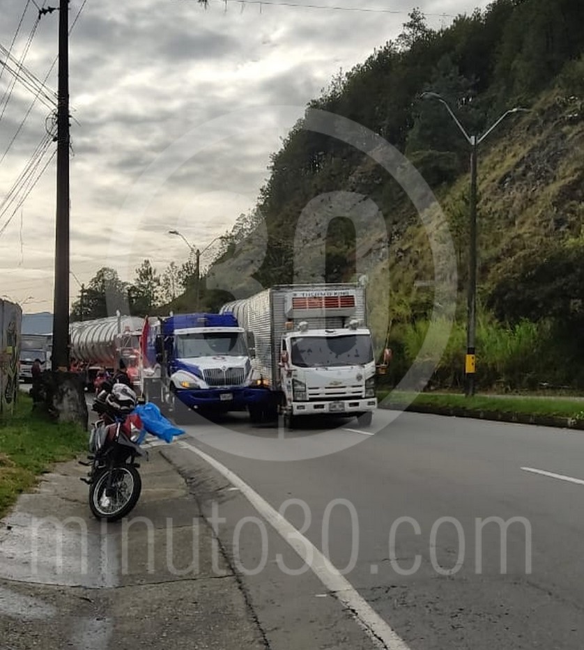 Durante la mañana de este lunes la entrada al Valle de Aburrá desde la Autopista Medellín – Bogotá estuvo completamente cerrada por el choque entre dos vehículos de gran tamaño que obstaculizó el paso de los demás.