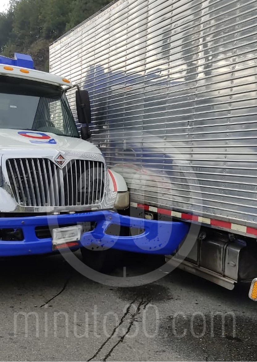 El accidente se presentó a la altura de la Báscula, en el municipio de Bello, kilómetro 002+700, donde un camión impactó por un costado con un furgón, tapo banco los dos carriles.