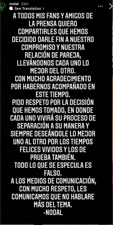 Este sábado el cantante Christian Nodal anunció su ruptura con Belinda y señaló que no hablaría más del tema. Sin embargo, a las pocas horas, discutió con seguidores de la cantante de pop que le recriminaron su actitud.