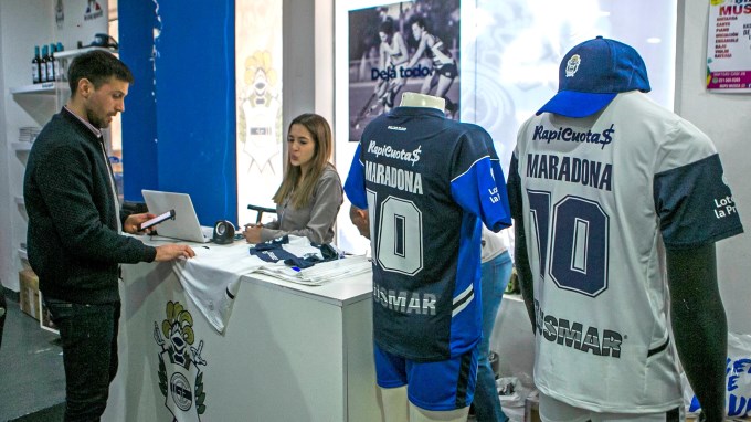 Los empleados del club se vieron desbordados por hinchas de Gimnasia y fanáticos de Maradona, que también compraron camisetas y accesorios del equipo bonaerense.