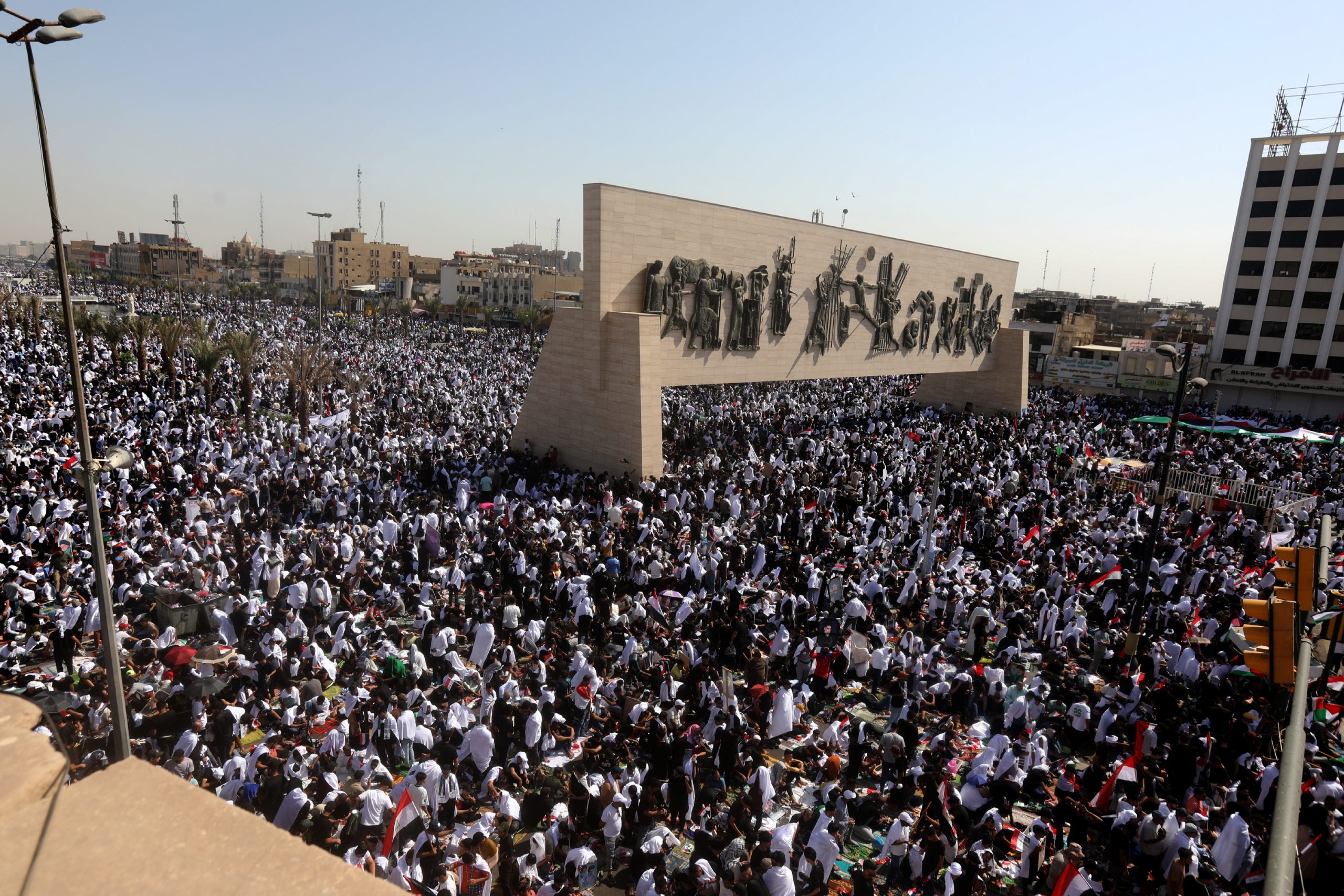 La marcha, convocada por el influyente clérigo chií Muqtada al Sadr en la céntrica plaza Tahrir de la capital iraquí, congregó una multitud de iraquíes que corearon lemas como "Muerte a Israel, Muerte a Estados Unidos" y criticaron el "silencio occidental" ante el asedio israelí de la Franja de Gaza.
