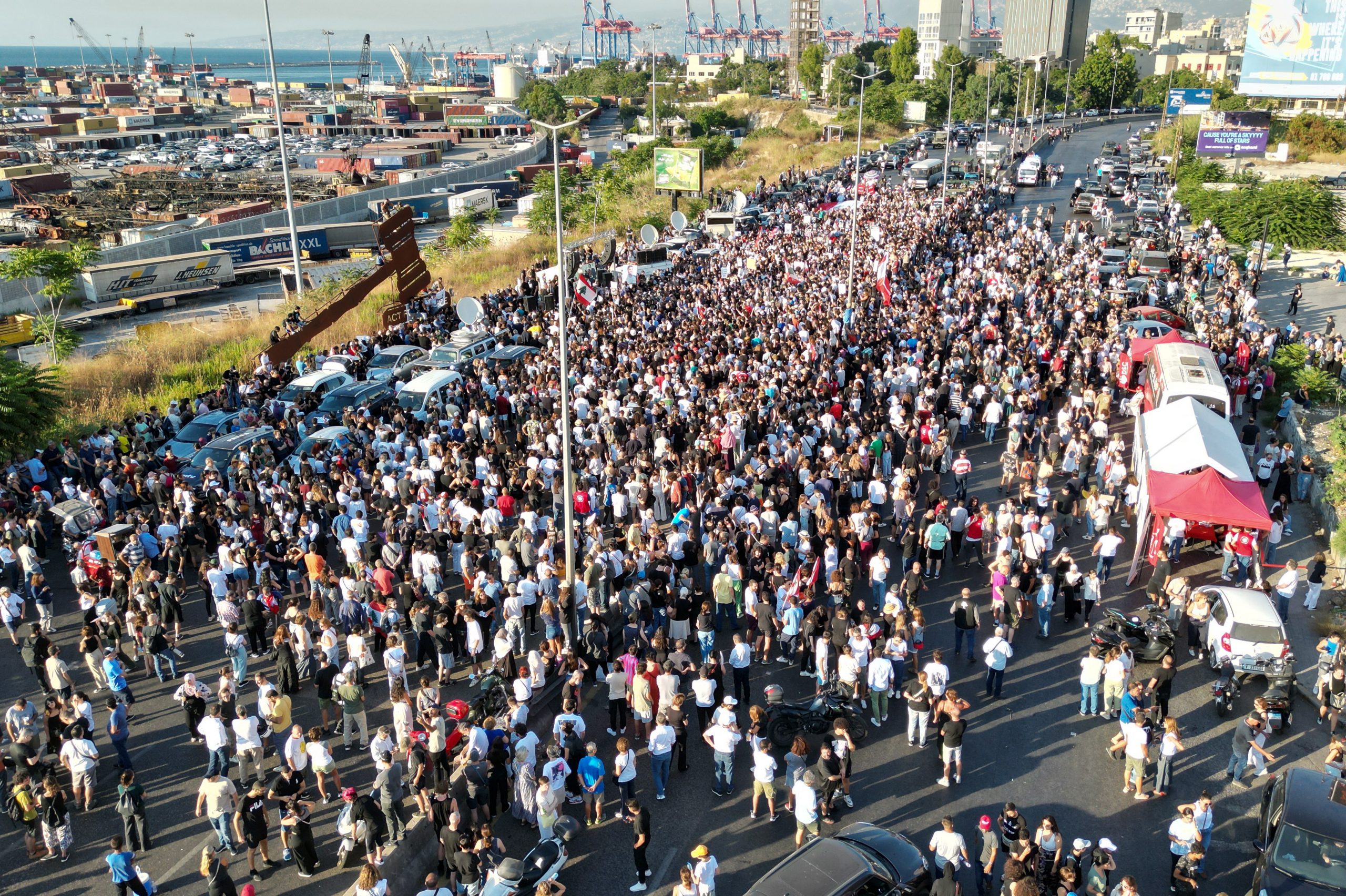 Como el último 4 de agosto, los manifestantes se congregaron hoy en el puerto de Beirut para escuchar recitar los nombres de todos los fallecidos cuando el reloj se acercaba a las 18.08, la hora exacta en que se produjo la deflagración hace tres años.