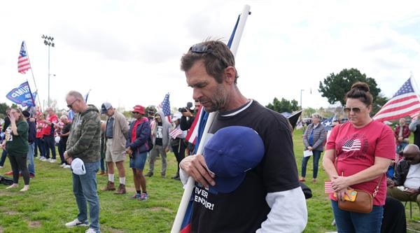 Los asistentes al evento, que tuvo una notable seguridad, llegaron principalmente del sur de California, pero el contingente incluyó residentes de distintos puntos del país. Algunos ondeaban banderas del estado de Texas.