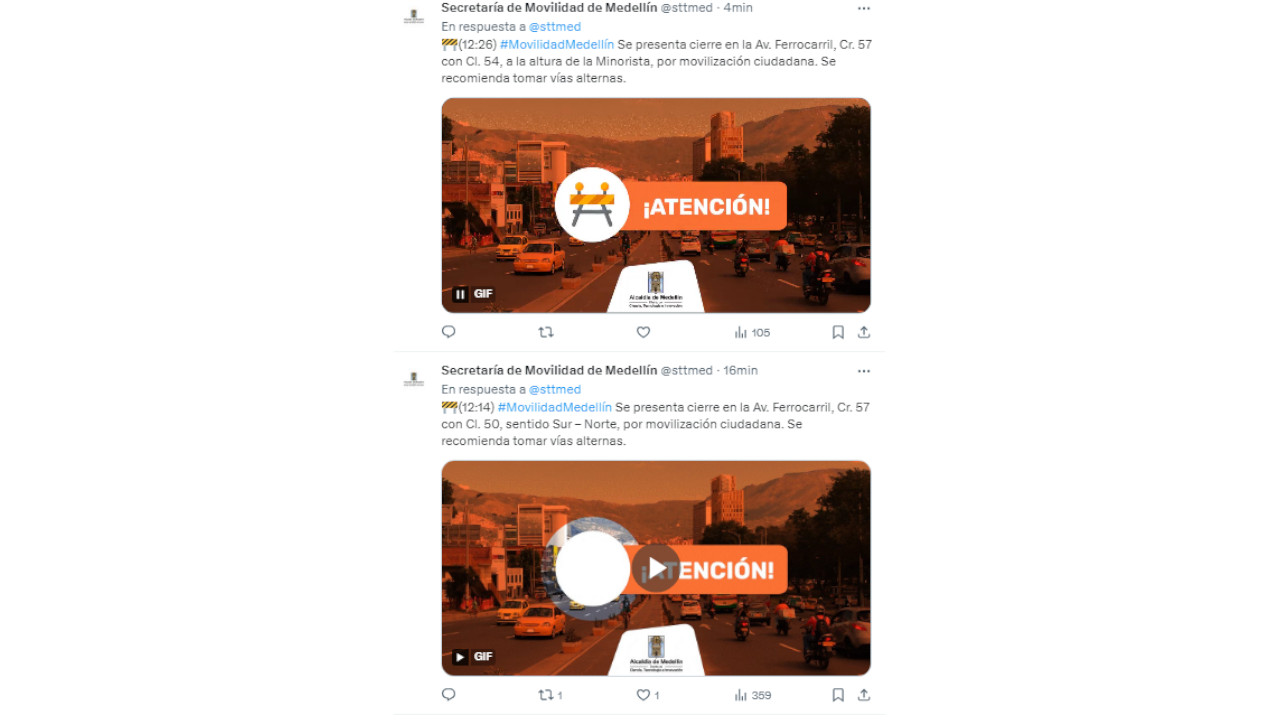“Se presenta cierre en la Cl. 44 con Cr. 52, sentido Oriente – Occidente, por movilización ciudadana”, anunciaron funcionario de la Secretaria de Movilidad.
