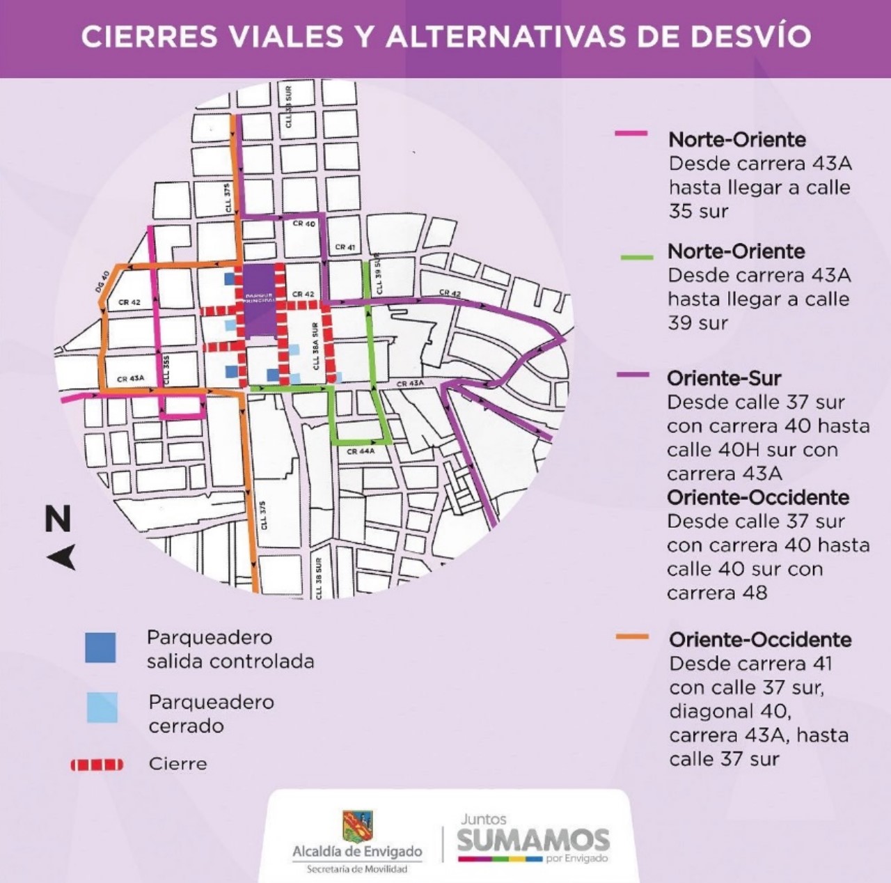 Tenga en cuenta que algunas rutas de transporte público que circulan por estos sectores tendrán cambios temporales en sus recorridos.