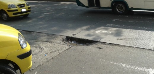 Minuto30.com-. Ciudadanos se quejan de un hueco que está sobre la avenida Oriental con Colombia, en el centro de Medellín.
