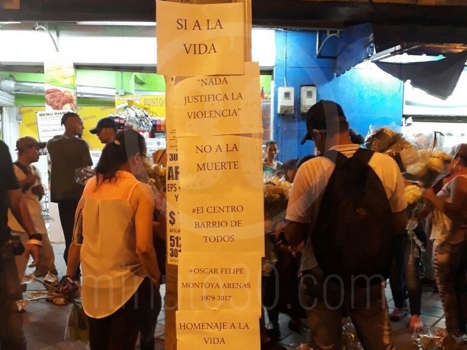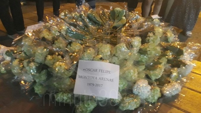 Decenas de ciudadanos se reunieron, junto al secretario (e) de Seguridad, Andrés Tobón, y personal de la Policía Nacional, para rendirle un homenaje a Óscar Felipe Montoya Arenas, de 38 años de edad, quien perdió la vida en medio de un atraco.