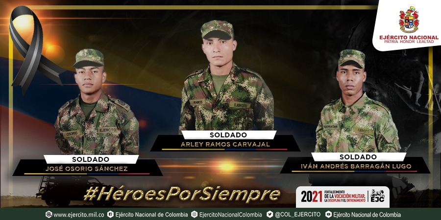Como comandante del @COL_EJERCITO y en nombre de los integrantes de la institución rechazo el asesinato de nuestros militares de @Ejercito_Div7, en Turbo e Ituango, Antioquia. Soldados que se encontraban protegiendo a las comunidades de los criminales.Condolencias a sus familias