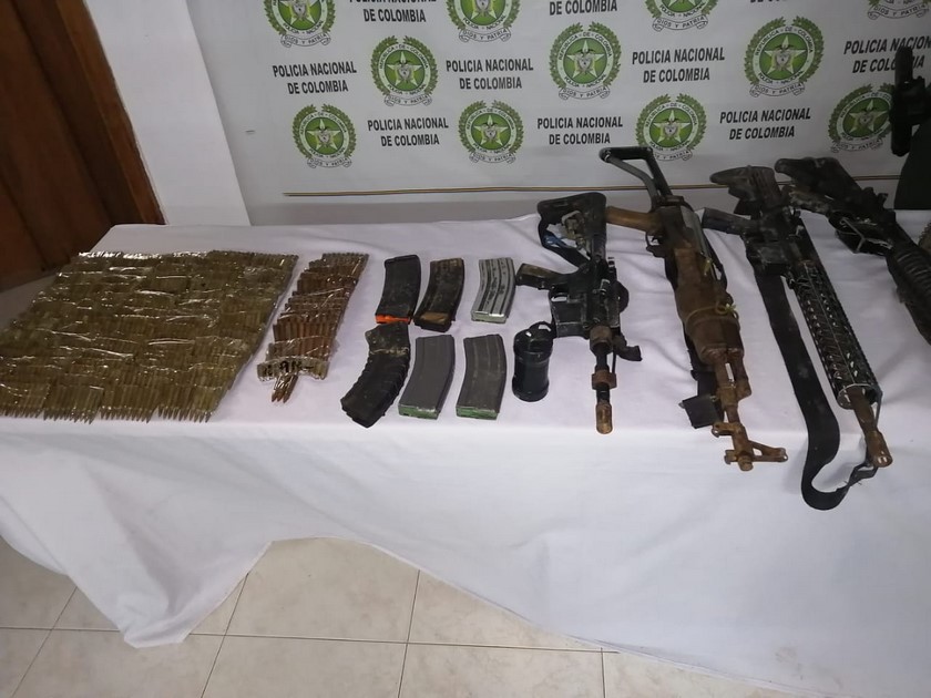 Según las autoridades, este arsenal que tenían en su poder sería utilizado por este grupo para afectar a la población civil y miembros de la Fuerza Pública, en este municipio del departamento del Córdoba.
