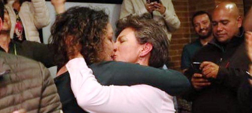 En un video que se ha hecho viral en redes sociales se ve a López y Lozano abrazadas dándose un beso para celebrar una votación récord de más de un millón de votos con la que se convirtió en la primera mujer en ganar la Alcaldía de la capital del país suramericano.