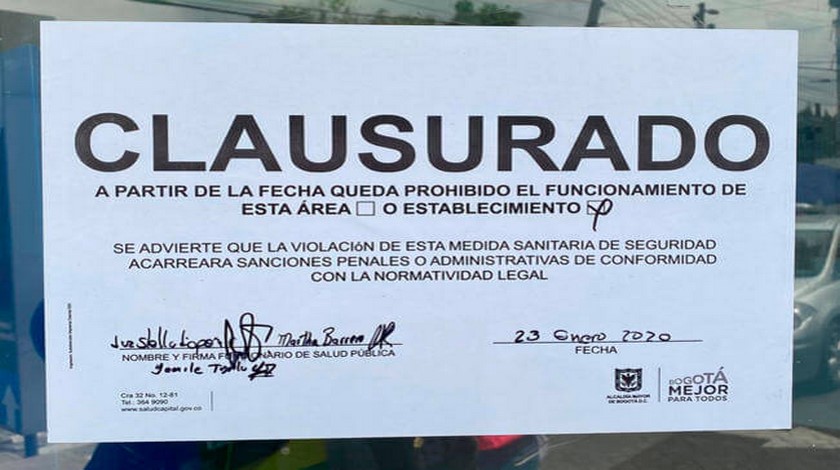 Según recogió el medio Blu Radio, la investigación evidenció un incumplimiento de normas sanitarias de los servicios, por lo que fue clausurada temporalmente.