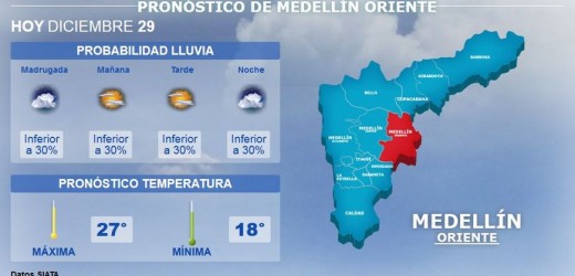 Este lunes 29 de diciembre, inicia con predominio de tiempo seco; el cual ya completa más de 96 horas en la mayor parte de la subregión, con cielo parcialmente nublado y con una temperatura en Medellín de 20°C en promedio, por su parte en el norte en Barbosa tenemos 18°C y en Copacabana 19°C; y […]