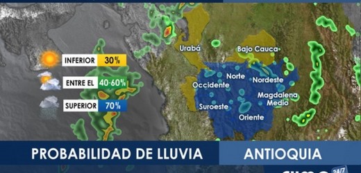 Probabilidades de lluvia para la mañana, tarde y noche, en Medellín y municipios cercanos.