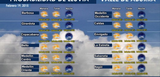 A lo largo de la madrugada entre la 1:00 a.m. y 2:30 a.m. se presentaron lluvias de ligera intensidad en el oriente del Valle de Aburrá en Santa Elena y en el suroccidente en Itagüí y Sabaneta. Las lluvias se disiparon totalmente a las 3:00 a.m.   A nivel nacional las nubes han permanecido en […]