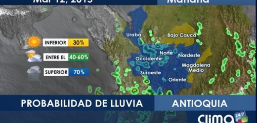 Durante la madrugada contamos con presencia de dos sistemas de mediana elevación en la atmósfera en varias subregiones del departamento, el primero sobre el Urabá, el Nordeste, el Occidente y el Norte; y el segundo entre el Bajo Cauca y el Magdalena Medio, estos sistemas han ido perdiendo altura en las últimas horas mientras se desplazan hacia el Sur.