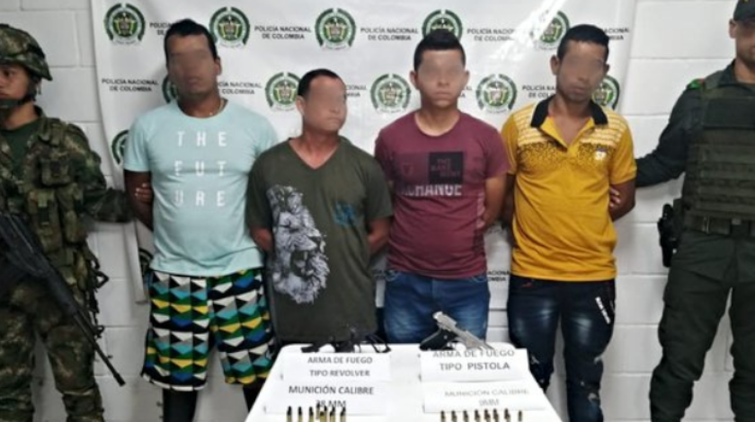 Según las autoridades, a estos hombres que sería presuntos integrantes del Clan del Golfo los sorprendieron cuando portaban dos armas de fuego.