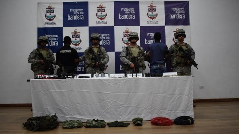 Los sujetos fueron sorprendidos por tropas de Infantería de Marina, adscritas a la Fuerza Naval del Pacífico, cuando se movilizaban en una embarcación transportando material alusivo al Grupo Armado Organizado Eln, armamento, municiones y material de intendencia.