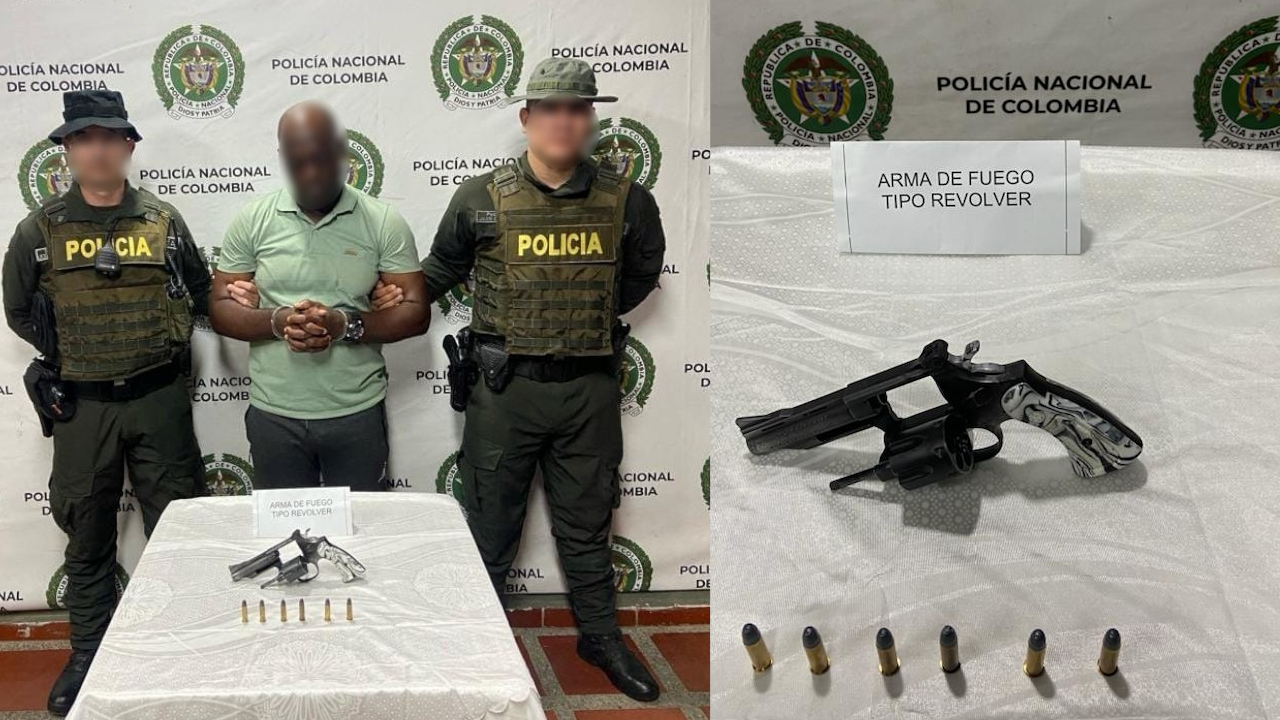 El sujeto fue dejado a disposición de la Fiscalía General de la Nación para que responda por el delito de porte ilegal de armas de fuego.