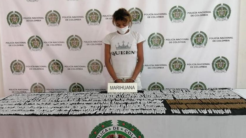 Según las autoridades, fue requerida para una requisa en la cual le encontraron 1.150 cigarrillos de marihuana que iban a ser entregados para la distribución y venta en la zona céntrica de la ciudad de Medellín.
