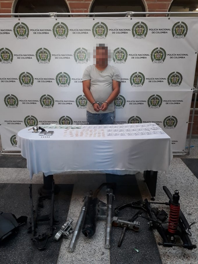 Además se incautaron varias partes de una motocicleta desarmada entre ellas un motor.