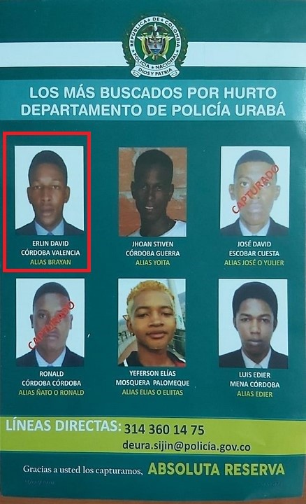 Según el reporte de las autoridades, alias “Loco Negro”, sería un presunto integrante del Grupo de delincuencia común “Los Batman” quienes según las autoridades, se dedicarían al hurto, extorsión y ataques a otros jóvenes en el municipio de Turbo.