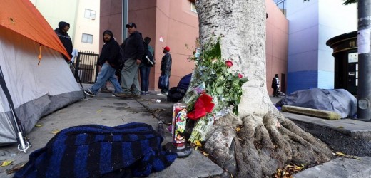 Flores y velas han sido colocadas en el lugar donde varios policías mataron a un indigente tras un altercado en el centro de Los Ángeles, Estados Unidos.