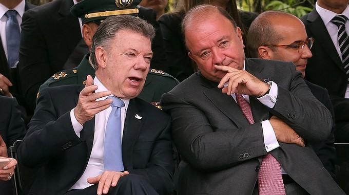 El presidente colombiano, Juan Manuel Santos (i), y el ministro de Defensa, Luis Carlos Villegas (d