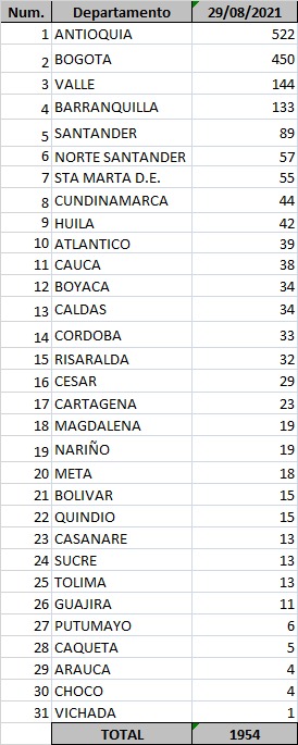 Este domingo, 29 de agosto, el Ministerio de Salud dio a conocer un nuevo reporte con el número de casos de covid-19 en Colombia, y la tendencia continúa a la baja, como en las últimas semanas.