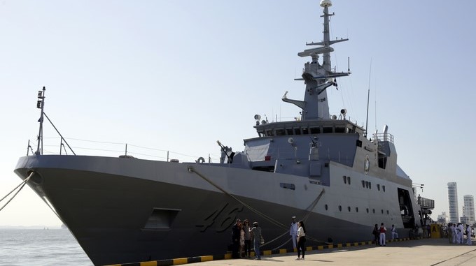 El buque ARC 20 de Julio zarpa hoy, viernes 15 de diciembre de 2017, en el puerto de Cartagena (Colombia). La IV Expedición Científica de Colombia a la Antártida zarpó del puerto de Cartagena de Indias con 112 personas a bordo del buque de la Armada ARC 20 de Julio entre tripulantes e investigadores. EFE/Ricardo Maldonado Rozo
