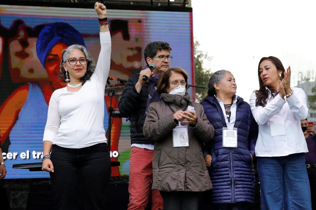 Fotografía de archivo fechada el 4 de marzo de 2022 que muestra a un grupo de candidatas a la Cámara y el Senado mientras participan en un evento del Pacto Histórico, en Bogotá (Colombia). EFE/Carlos Ortega
