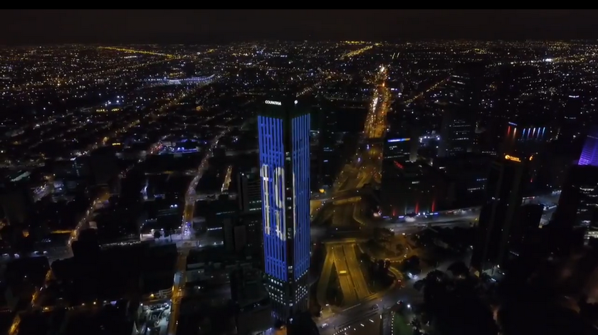 Producto de ese fichaje, y de la alegría que generó en el país, la emblemática Torre Colpatria se vistió de azul, con el número 19, que es el de la camiseta de Rodríguez.