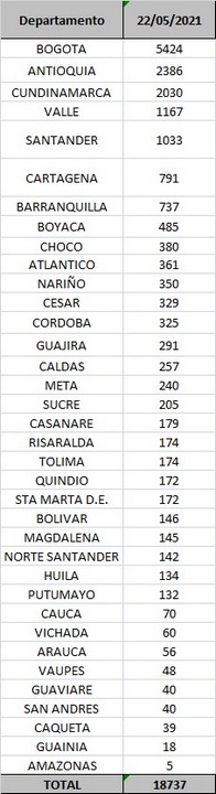 104.752 casos activoshttps://t.co/SiKTpTCQ3W pic.twitter.com/RBuBkr9TRW— MinSaludCol (@MinSaludCol) May 22, 2021