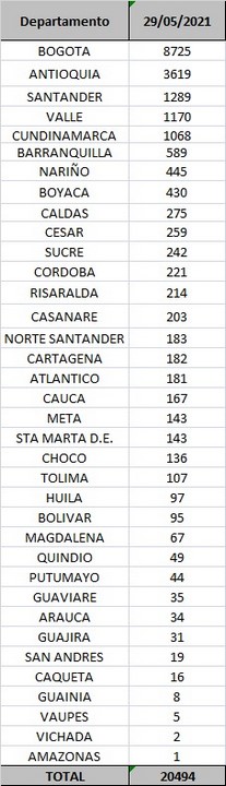 122.809 casos activoshttps://t.co/SiKTpTCQ3W pic.twitter.com/etWjzC5qin— MinSaludCol (@MinSaludCol) May 29, 2021