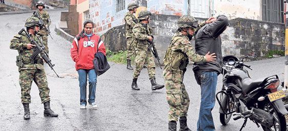 La vigilancia en Medellín. Un soldado colombiano revisa a un hombre junto a otros militares en el departamento de Antioquia. El Gobierno movilizó a 400 000 efectivos. Raúl Arboleda / AFP