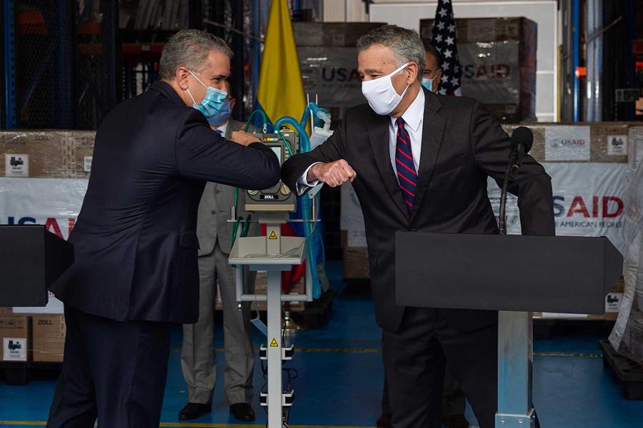 Los ventiladores, que fueron entregados a Colombia a través de la Agencia de los Estados Unidos para el Desarrollo Internacional (USAID), fueron recibidos en la Zona Franca de Bogotá por el presidente Iván Duque, que calificó la donación como “una muestra de solidaridad, de amistad” de Estados Unidos.