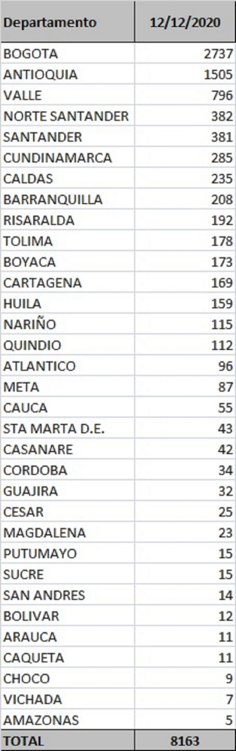 Estás son las cifras oficiales del covid-19 en Colombia, este 12 de diciembre: