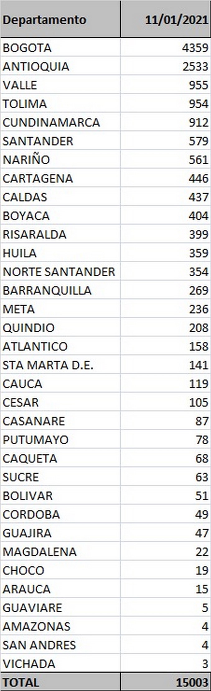 Estás son las cifras oficiales del covid-19 en Colombia, este 11 de enero: