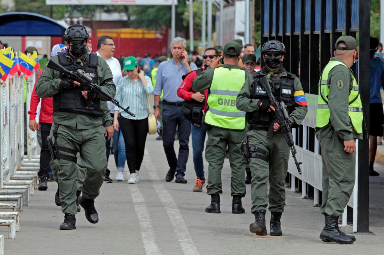 Soldados venezolanos fueron registrados este miércoles, 21 de septiembre, al patrullar su lado del Puente Internacional Simón Bolívar, en la frontera con Colombia, en Cúcuta (Norte de Santander, Colombia). EFE/Mario Caicedo