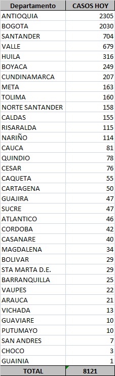 Colombia volvió a subir de 80.000 activos de covid, y Antioquia fue el más contagiado hoy