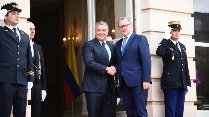 #Paris Nos reunimos con el Presidente de @AssambleeNat de #Francia, @RichardFerrand. Tuvimos la oportunidad de compartir sobre nuestra agenda binacional, que incluye la implementación de #PazConLegalidad, cooperación en medio ambiente y atención a los migrantes de #Venezuela. pic.twitter.com/CrHGj2VQ3G
