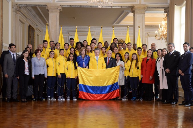 El Presidente de la República, Juan Manuel Santos, hizo entrega, este jueves, 2 de noviembre, de la bandera nacional a la delegación que participará del 11 al 25 de noviembre, en los XVIII Juegos Bolivarianos Santa Marta-2017.
