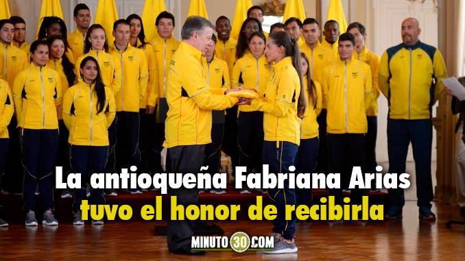 En ceremonia que se cumplió en el Salón Gobelinos de la Casa de Nariño, un grupo de deportistas, entrenadores y directivos acompañaron a Fabriana Arias, para tomar el pabellón nacional que llevarán a las justas deportivas que dan inicio al Ciclo Olímpico Tokio-2020.